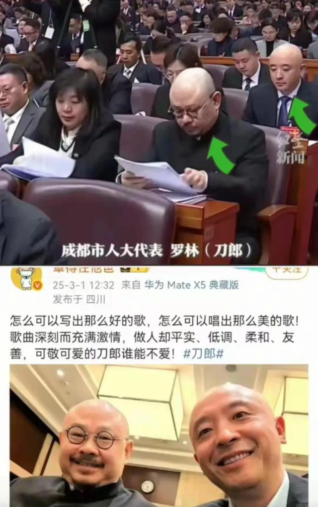 更令人惊喜的是,刀郎不仅在音乐领域大放异彩,更勇敢地跨出了舒适区,在两会上大放异彩,成为众人瞩目的焦点。他以一身黑色中山装搭配白色衬衫,再点缀以一副斯文的黑色圆框眼镜,仿佛一位从经典电影中走出的智者。而那胸前醒目的红色出席证,更是彰显了他作为两会代表的新身份。